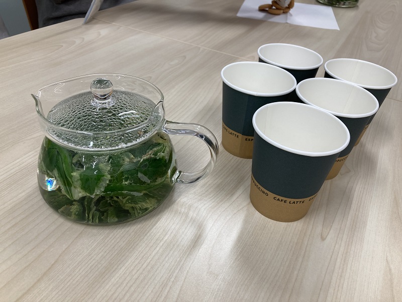 他には、本社、各拠点の社員が試飲できるようにしており、ハーブの香りに加え、IBUKIの取り組みへの社内関心も高まりました。さがみ野のメンバーが育てたハーブを、社内外で活用されていることは、私たちの誇りにもなっています。